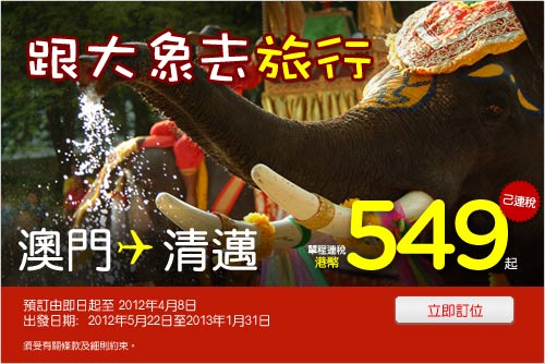 只限四天!澳門直飛泰國清邁單程連稅只需港幣$549起 – AirAsia 亞洲航空 (優惠至4月8日)