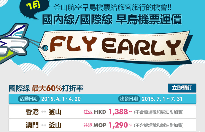 釜山航空推出7月份早鳥優惠,大家可以睇下暑假旺季會唔會有平