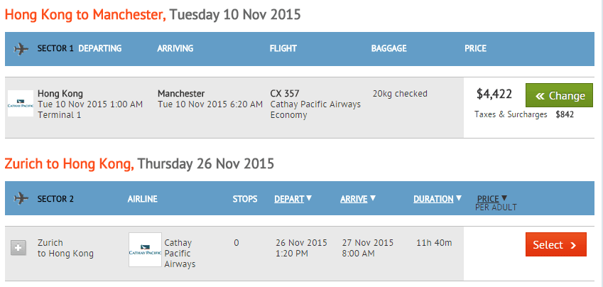 大家可以上ZUJI Hong Kong用Multi City/Stopover功能訂票
