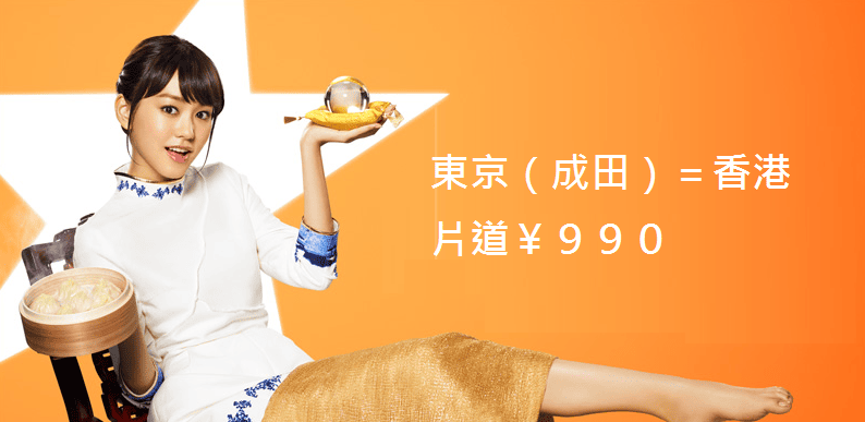 東京成田飛香港單程只需990円,連稅約3,830円(約$249)