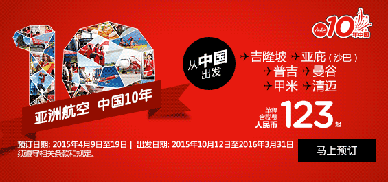 嘩嘩嘩!AirAsia 岩岩推出亞航中國10周年感恩震撼優惠