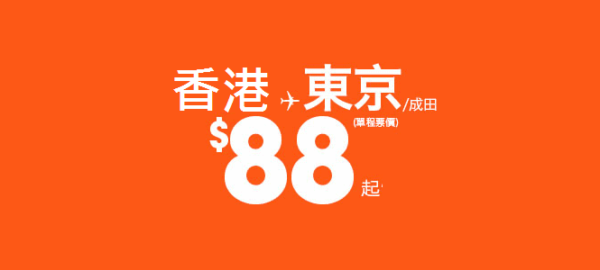 勁抵!開搶啦!香港飛東京成田單程只需$88 – Jetstar Japan (優惠至4月15日)