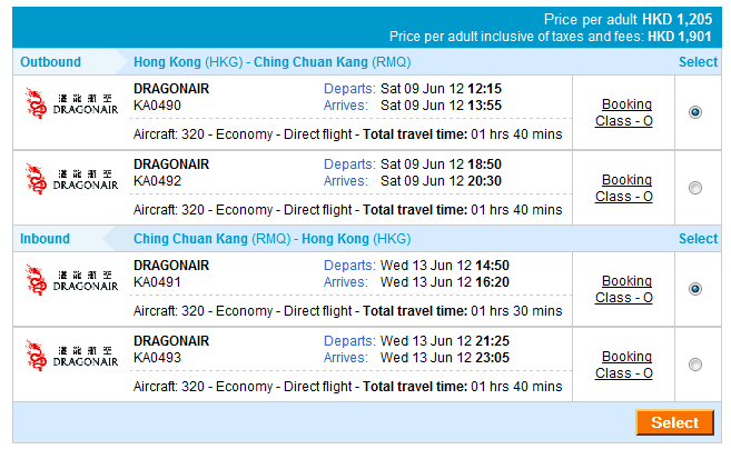 港龍航空亦都推出左呢條航線既超班優惠,香港往返台中只需港幣$1,205,連埋稅就$1,901