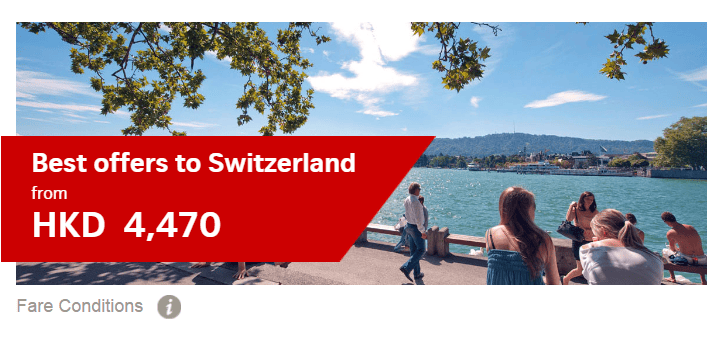 11月30日前出發!香港直航往返蘇黎世只需$4,470 – 瑞士航空 (優惠至5月4日)