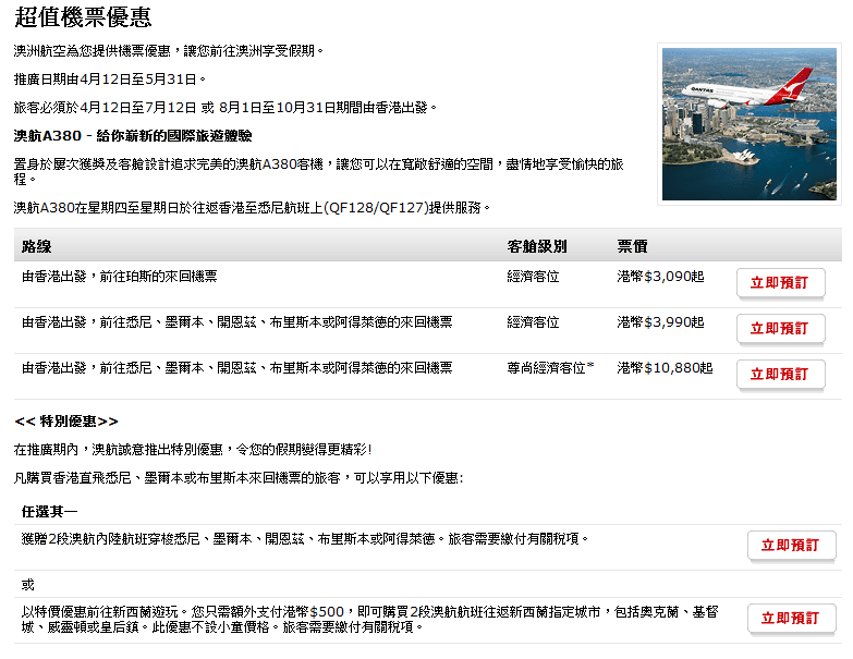 香港往返珀斯只需 $3,090 悉尼、 墨爾本、 開恩茲、 布里斯班或阿得萊德 $3,990 – 澳洲航空 Qantas Airways (優惠至5月31日)