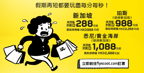 限時24小時!6月30日前出發!香港飛新加坡來回連稅$602、澳洲$2,187起 – Scoot 酷航 (優惠至4月25日11am)