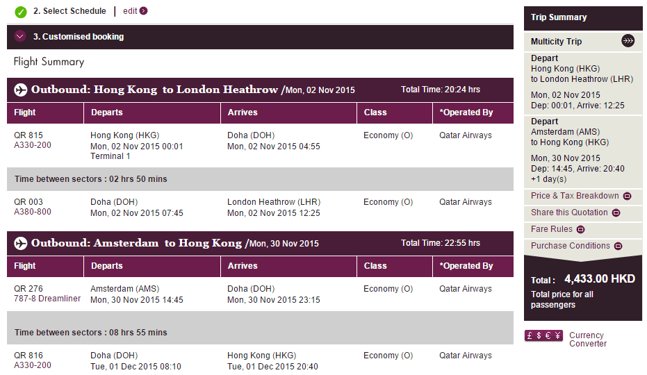 優惠可以open jaw,即係去同返唔一定要係同一個地方,大家係卡塔爾航空官網首頁揀 Multi-city 就可訂到open jaw