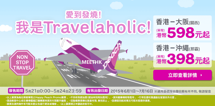 開賣啦!香港飛大阪、沖繩單程只需$398起 – 樂桃航空 (優惠至5月24日)