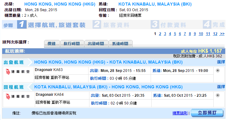 港龍之前推出左沙巴二人同行優惠,當時出發日期只係到7月8日,近日延長去到12月啦
