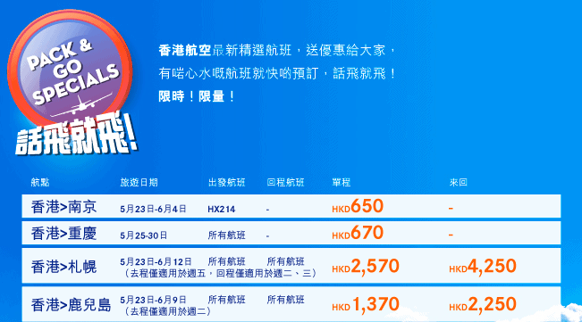 有興趣今晚12點可以上香港航空官網睇睇!