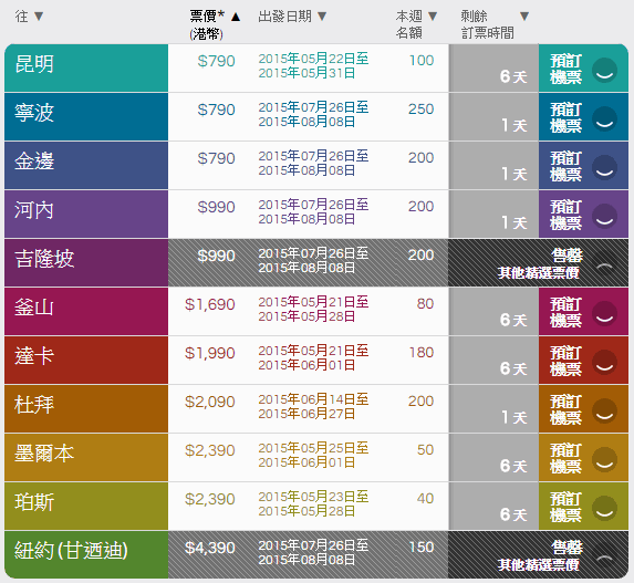 確實既出發日期就要到一陣8點由國泰港龍公佈,大家準時搶飛啦
