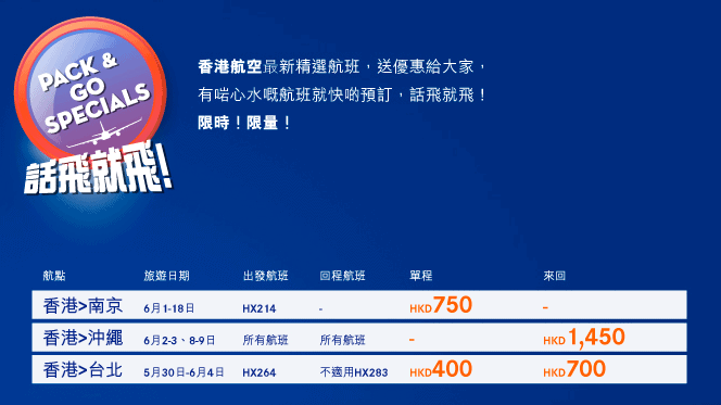 開賣啦!香港往返台北$700,沖繩$1,450 – 香港航空 (優惠至5月22日)