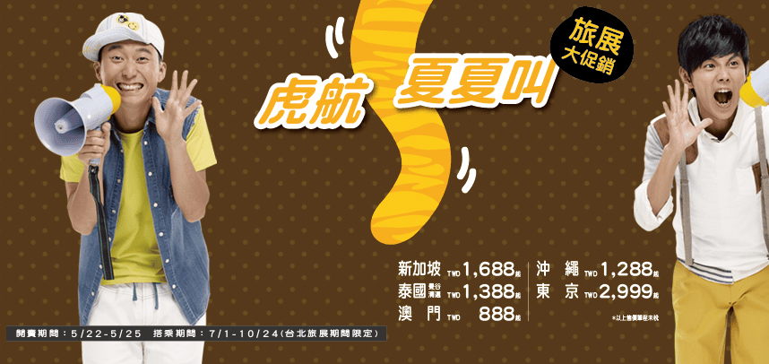 澳門Fans留意啦!台灣虎航會係今晚12點推出優惠!