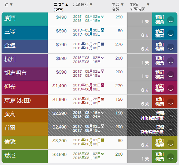 確實既出發日期就要到一陣8點由國泰港龍公佈,大家準時搶飛啦