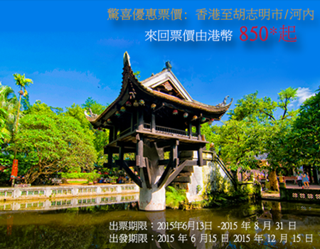 香港往返河內、胡志明市只需$900,連稅胡志明市$1,281、河內$1,320