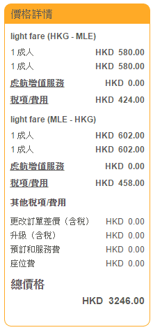 經我們測試,以馬爾代夫8月13日出發,8月19日返回