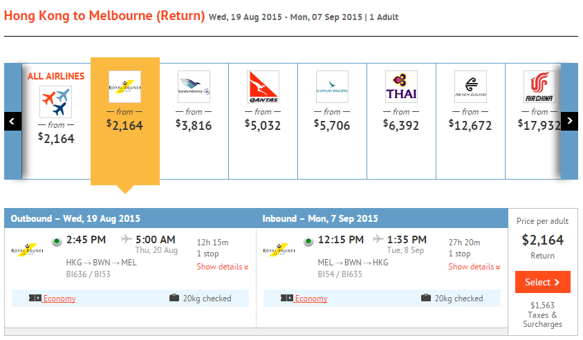 香港往返澳洲墨爾本只需$2,164,連稅$3,723