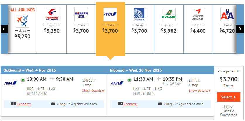 機票只需$3,700 + $1,364 (稅) = 機票連稅$5,064