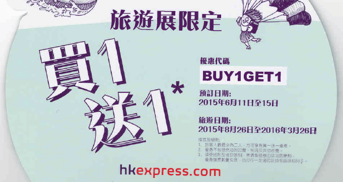 http://www.hkexpress.com (優惠代碼:BUY1GET1 )