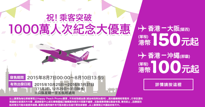 嘩!抵到爛!開搶啦!香港飛沖繩單程只需$100,大阪$150 – 樂桃航空 (優惠至8月10日)