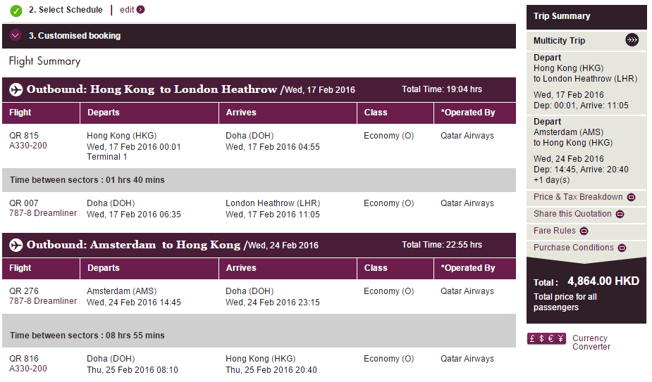 優惠可以open jaw,即係去同返唔一定要係同一個地方,大家係卡塔爾航空官網首頁揀 Multi-city 就可訂到open jaw