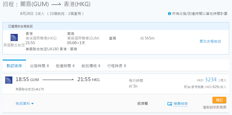 香港直航往返關島只需$3,234,連埋稅$3,860,價錢唔錯
