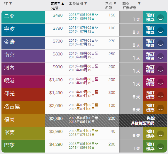 確實既出發日期就要到一陣8點由國泰港龍公佈,大家準時搶飛啦