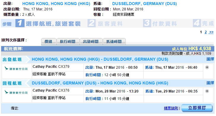 香港直航往返德國杜塞爾多夫只需$4,938,連稅$6,047,直航黎講價錢唔錯