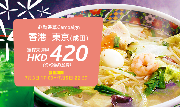 香港飛東京成田單程只需$420,來回連稅$1,103,價錢都唔錯