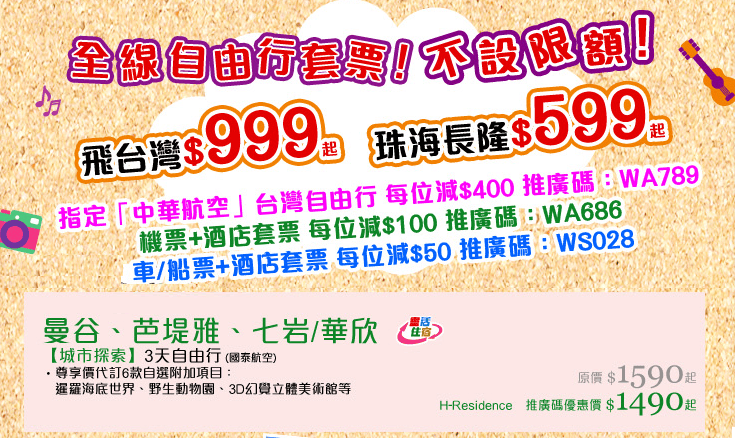 曼谷、芭堤雅、華欣3日2夜自由行套票只需$1,520起,連稅$1,993起,套票價仲平過單買國泰機票價錢