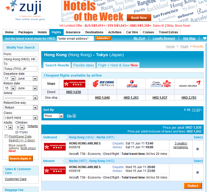 係ZUJI發現了香港航空東京超值優惠,乘搭香港航空或香港快運航空往返日本東京,每位只需$1,030起!
