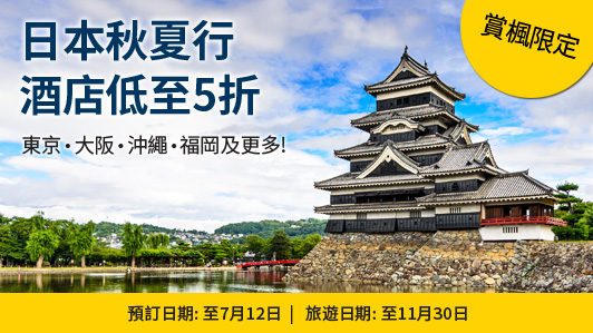 日本酒店限時5天低至五折優惠– Expedia HK (優惠至7月12日)