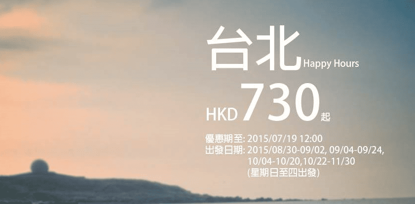 長榮限時優惠!11月30日前出發!香港往返台北只需$730起 – 長榮航空 (優惠至7月19日12pm)