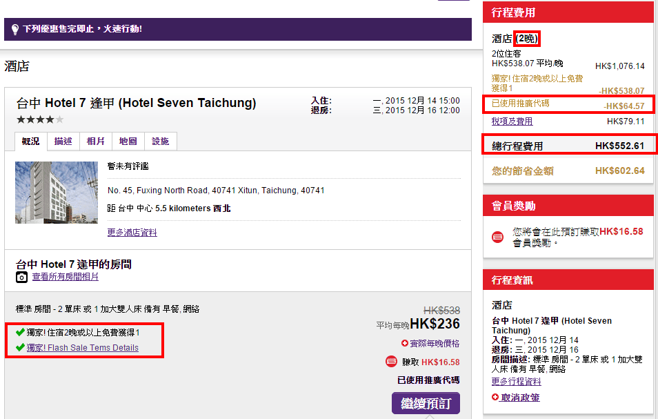 另外推介以下台灣酒店俾大家(會員優惠並已使用12%折扣代碼):