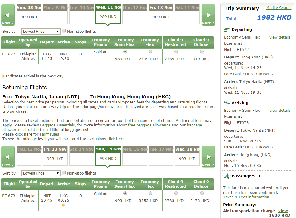 之前介紹過埃塞俄比亞航空飛東京優惠,當時佢個附加費計錯左,今個星期終於更正返,平多左五百幾!