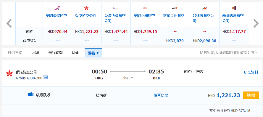 香港往返曼谷只需$848起 ,連稅$1,221起