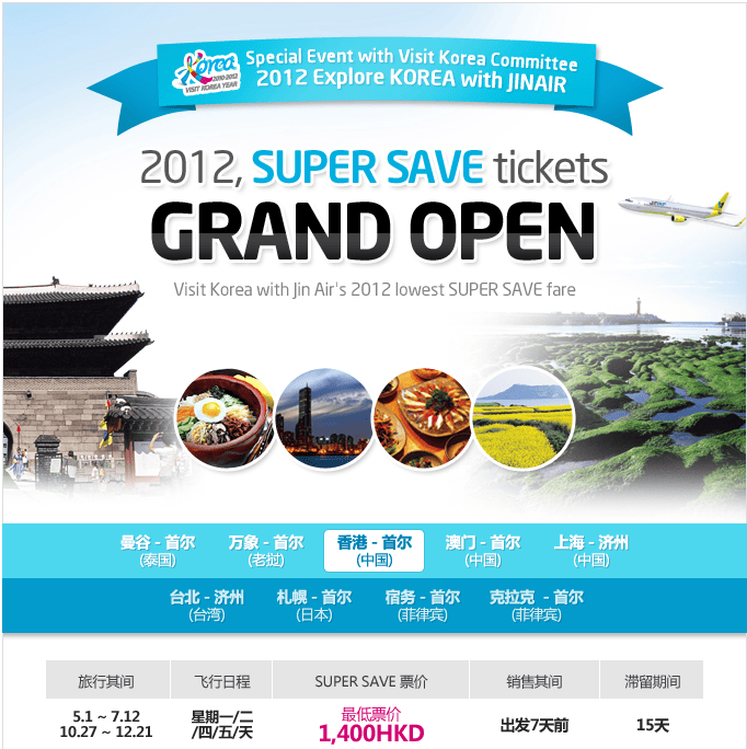 之前介紹過幾隻大韓航空全資子公司 – 真航空 Jin Air 既機票優惠,都係要經travel agent先可以訂到