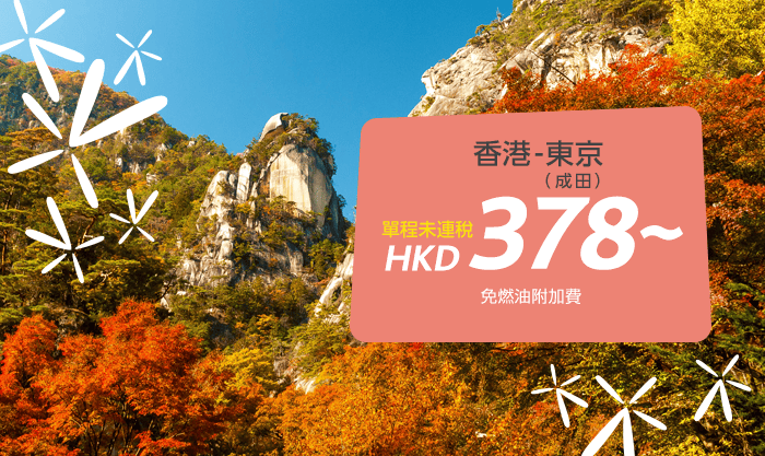 香港飛東京成田單程只需$378起,來回連稅$1,018起,價錢唔錯