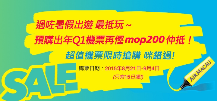 出發日期:2015年9月1日至9月25日、10月2日至12月17日、12月26日至2016年2月4日、2月12日至3月24日