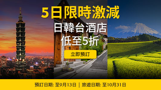Expedia HK推出左限時5日日韓台酒店低至五折優惠