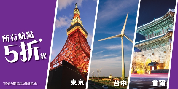 (布吉$280 連稅$698)、(台中$320 連稅$701)、(曼谷$350 連稅$768)、(清邁$360 連稅$778)、(峴港$380 連稅$768)、(釜山/濟洲$580 連稅$993)、(暹粒$580 連稅$1,031)、(首爾$580 連稅$1,035)、(廣島$780 連稅$1,031)、(福岡$780 連稅$1,098)、(大阪$780 連稅$1,240)、(東京/名古屋$780 連稅$1,208)、(昆明/寧波/無錫$280起 連稅$747起)