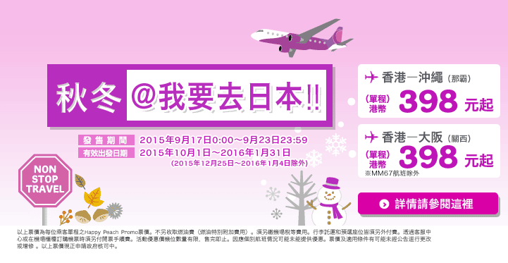 開賣啦!香港飛大阪、沖繩單程只需$398 – 樂桃航空 (優惠至9月23日)