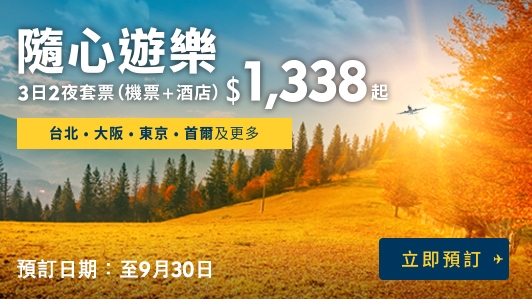 抵玩套票! 台北/首爾/東京/大阪/新加坡等3日2夜套票每人連稅$1,338起 – Expedia HK (優惠至9月30日)
