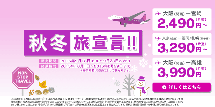 以上價錢並未包括託運行李及機上餐飲既費用,託運行李每程每件20kg以下2,600円