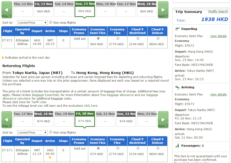 11月22日前出發!香港直航往返東京只需$1,600 – 埃塞俄比亞航空
