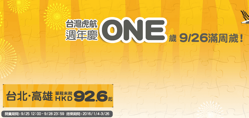 澳門Fans留意啦!台灣虎航會係聽日中午12點推出1歲生日優惠