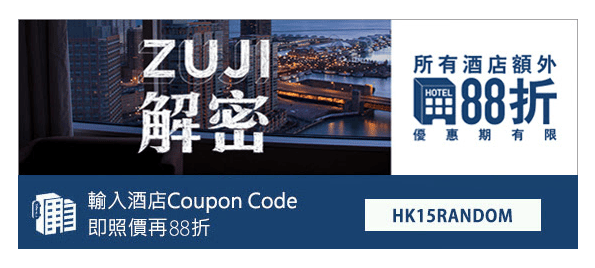 ZUJI Hong Kong 推出左個12%酒店折扣代碼,名額500個