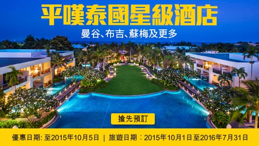 Expedia HK 推出左泰國星級酒店早訂優惠