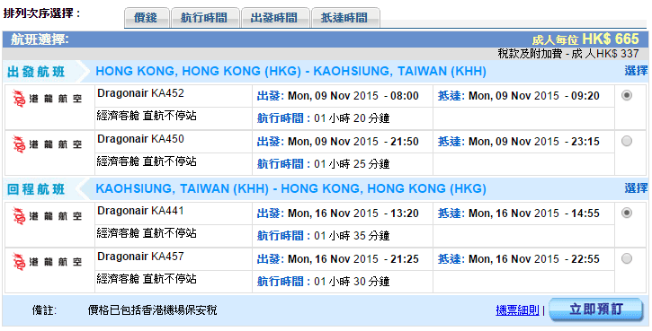 香港往返高雄二人同行每人只需$665,連稅$995,跌穿一千蚊心理關口,好抵!
