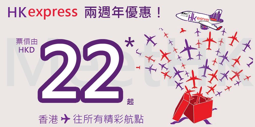 HK Express 一連兩星期推出2周年震撼優惠!每2-3日都有唔同既航點開賣!